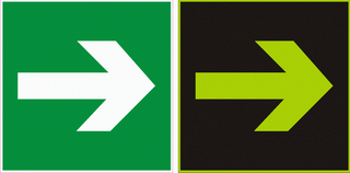 | Направляющая стрелка | Использовать только вместе с другими эвакуационными знаками для указания направления движения |