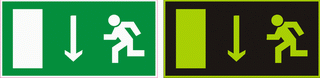 | Направление к эвакуационному выходу по лестнице вниз | На лестничных площадках и стенах, прилегающих к лестничному маршу |
