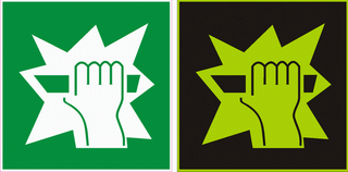 | Для доступа вскрыть здесь | На дверях, стенах помещений и в других местах, где для доступа в помещение или выхода необходимо вскрыть определенную конструкцию, например разбить стеклянную панель и т.п. |
