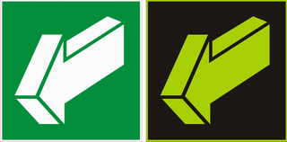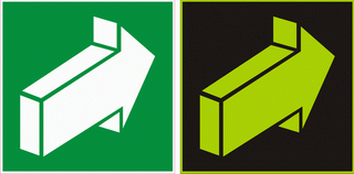 | Направляющая стрелка под углом 45° | Использовать только вместе с другими эвакуационными знаками для указания направления движения |