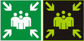 | Пункт (место) сбора | На дверях, стенах помещений и в других местах для обозначения заранее предусмотренных пунктов (мест) сбора людей в случае возникновения пожара, аварии или другой чрезвычайной ситуации |