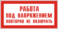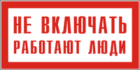 | Для запрещения подачи напряжения на линию, на которой работают люди | Белые буквы на красном фоне. Кант белый шириной 1,25 мм. | То же, но вывешивают на приводах, ключах и кнопках управления тех коммутационных аппаратов, при ошибочном включении которых может быть подано напряжение на воздушную или кабельную линию, на которой работают люди. |