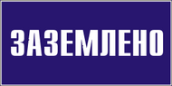 | Для указания о недопустимости подачи напряжения на заземленный участок электроустановки | Белые буквы на синем фоне. Кант белый шириной 1,25 мм. | В электроустановках электростанций и подстанций. Вывешивают на приводах разъединителей, отделителей и выключателей нагрузки, при ошибочном включении которых может быть подано напряжение на заземленный участок электроустановки, и на ключах и кнопках дистанционного управления ими |