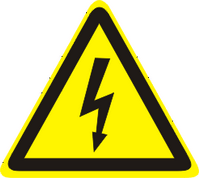 | Для предупреждения об опасности поражения электрическим током | По ГОСТ Р 12.4.026 (знак W08). Фон и кант желтый, кайма и стрела черные. Сторона треугольника: | В электроустановках до и выше 1000 В электростанций и подстанций. Укрепляется на внешней стороне входных дверей РУ (за исключением дверей РУ и ТП, расположенных в этих устройствах); наружных дверей камер выключателей и трансформаторов; ограждений токоведущих частей, расположенных в производственных помещениях; дверей щитов и сборок напряжением до 1000 В |