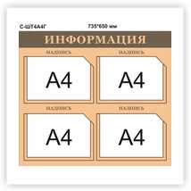 С-ШТ04А4Г (стенд с шапкой и надписями над карманами) | 735х650 | 1976,00 | 3230,00 |