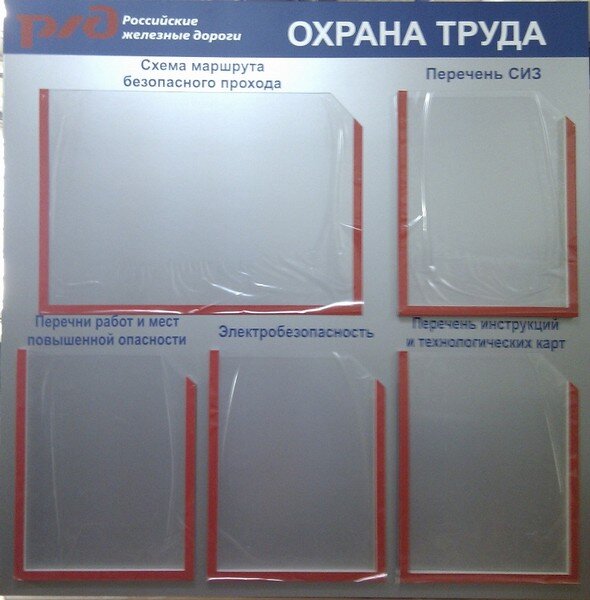 Размер 1100х850 мм, основа - ПВХ 4 мм, стенд обрамлен алюминиевой рамкой с подвесами.